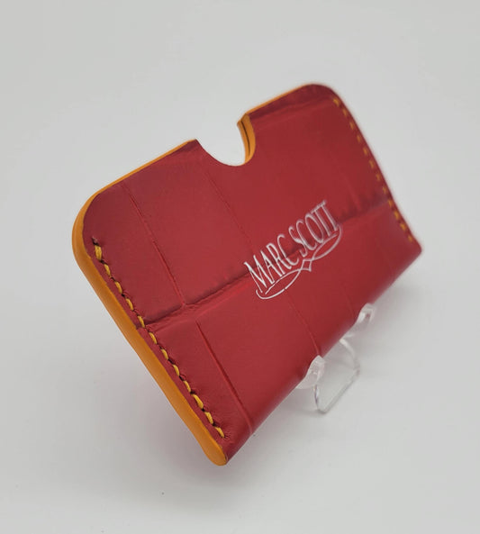 Zab - Card Wallet - Single Slot - Multi-Card Holder - Crocodile Embossed Red/Sun Orange