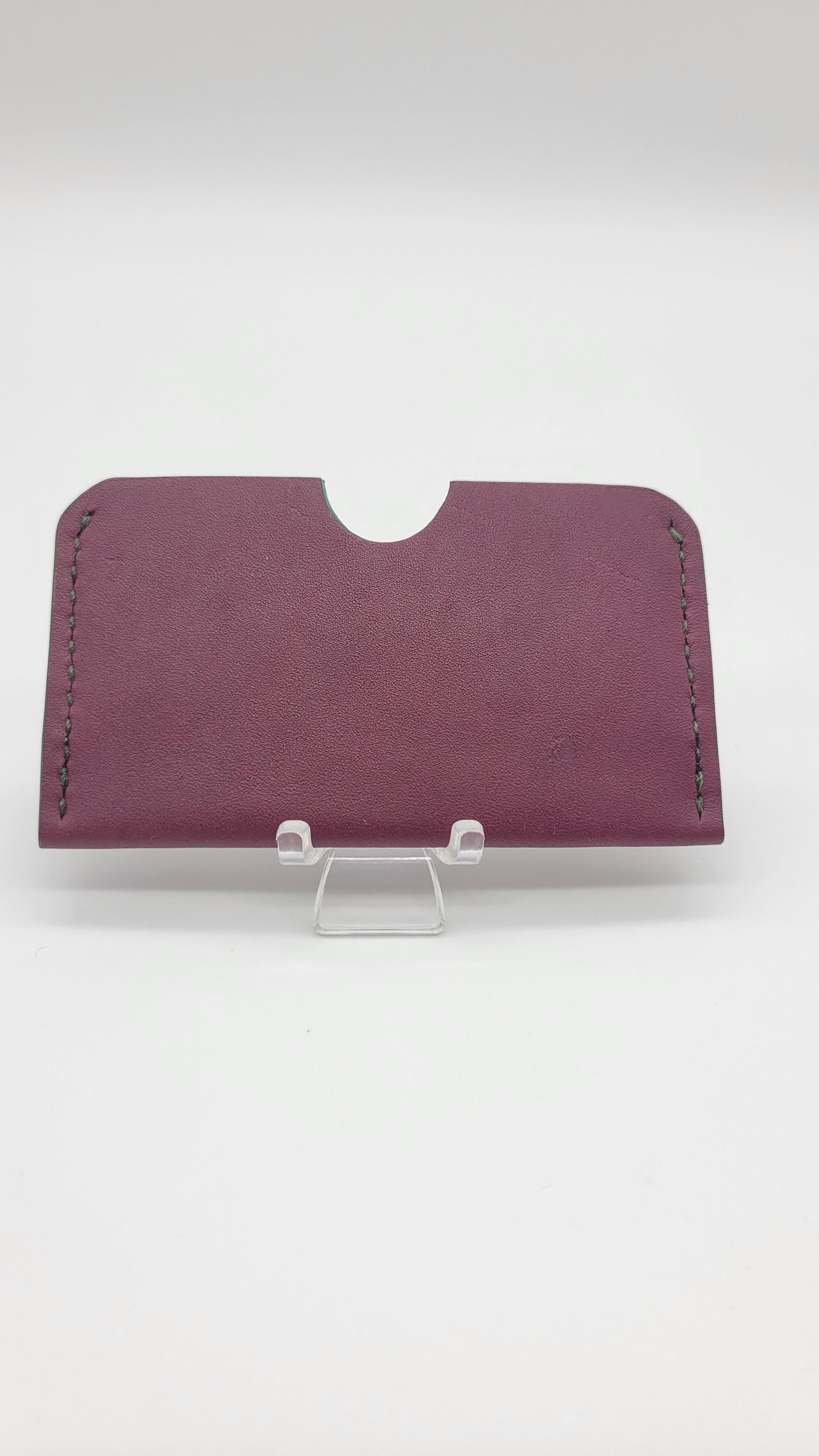 This single slot card wallet is full leather exterior and interior. We have matching edge paint to the leather lining. These wallets can hold 2-3 cards. All our products are hand sewn to provide high-quality goods.