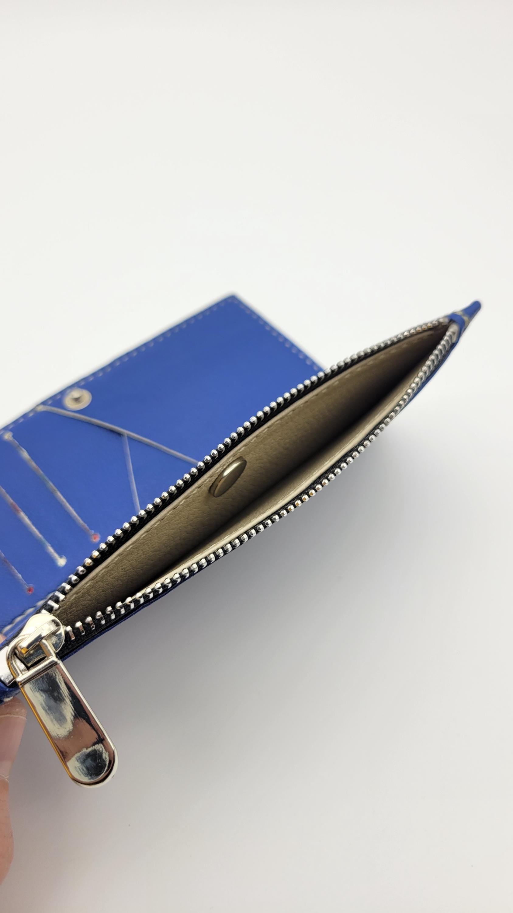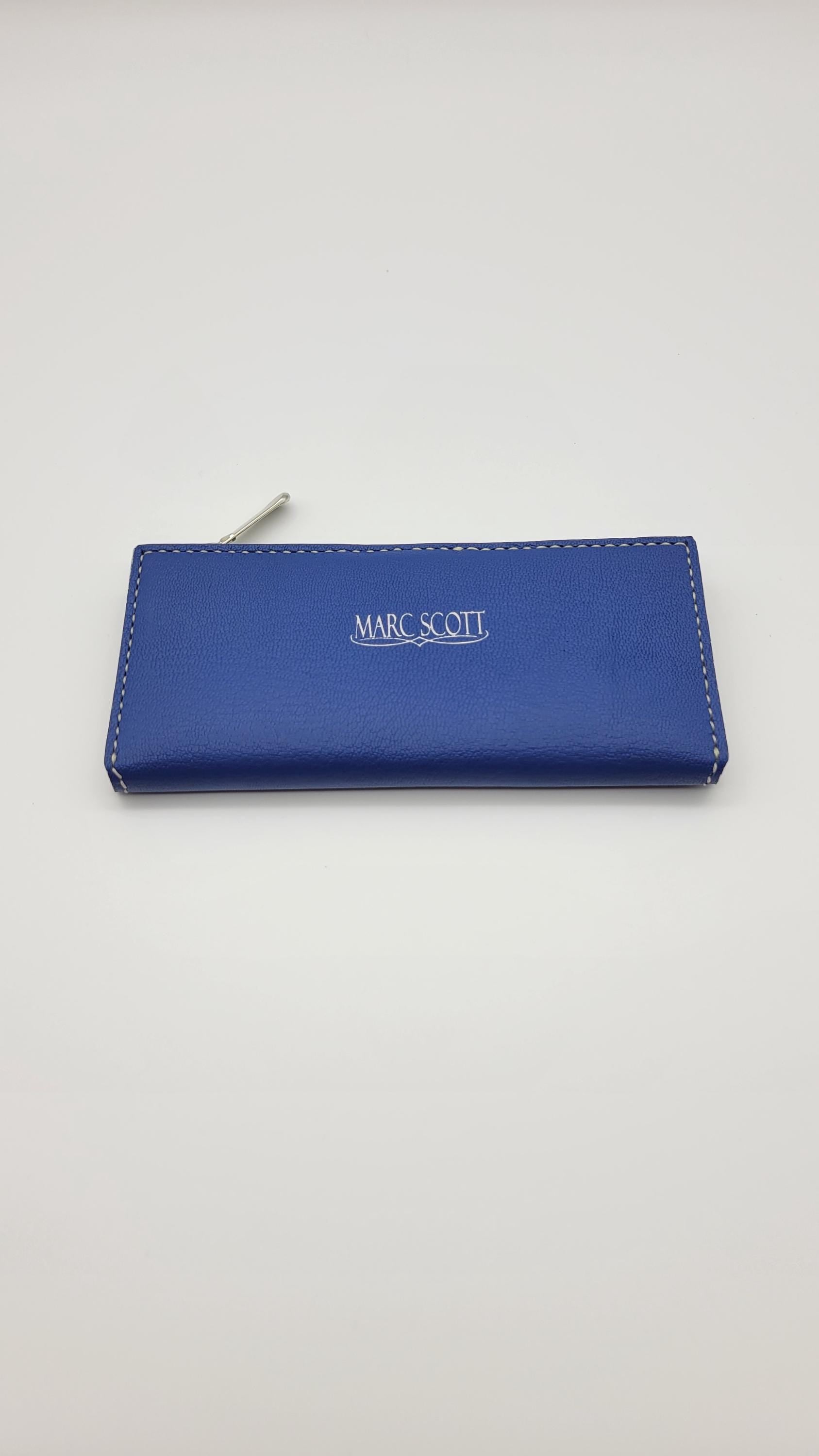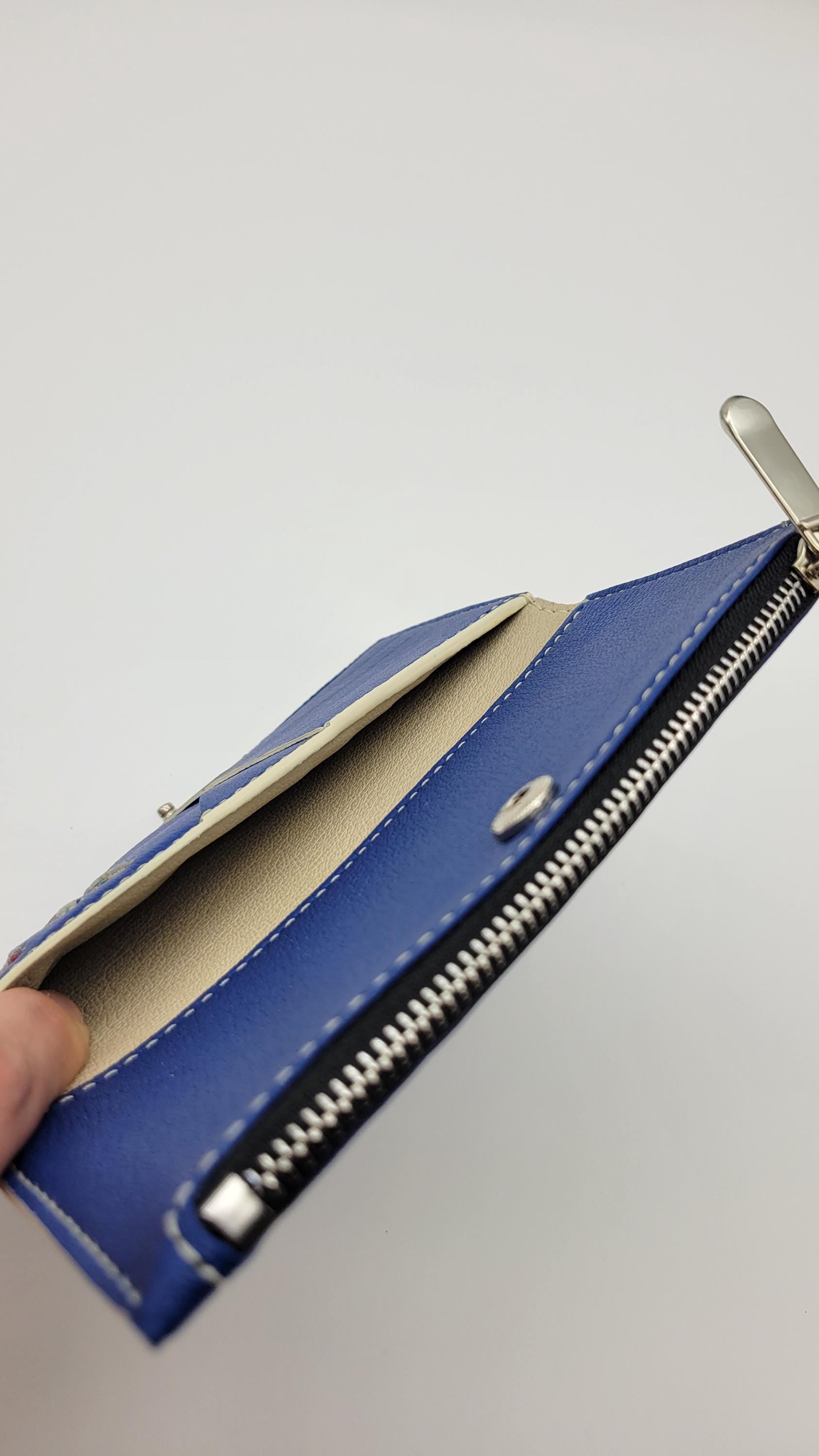 The Ivory is a folding wallet including a zip pocket, 5 card slot and a cash slot. It is lined leather. This piece has teal edge paint. It is 100% hand crafted. We cut, paint and sew all our products by hand. Hand painted logo.