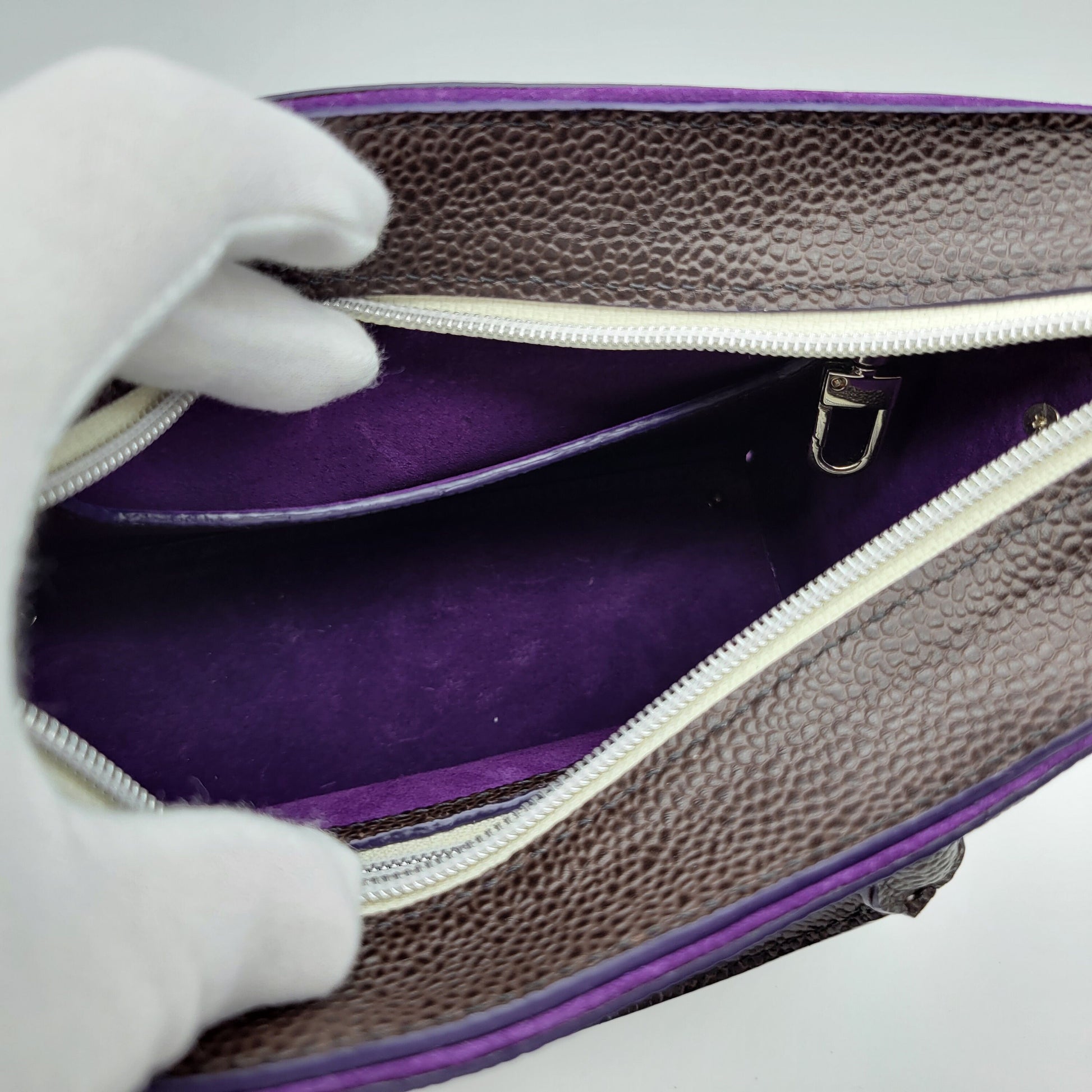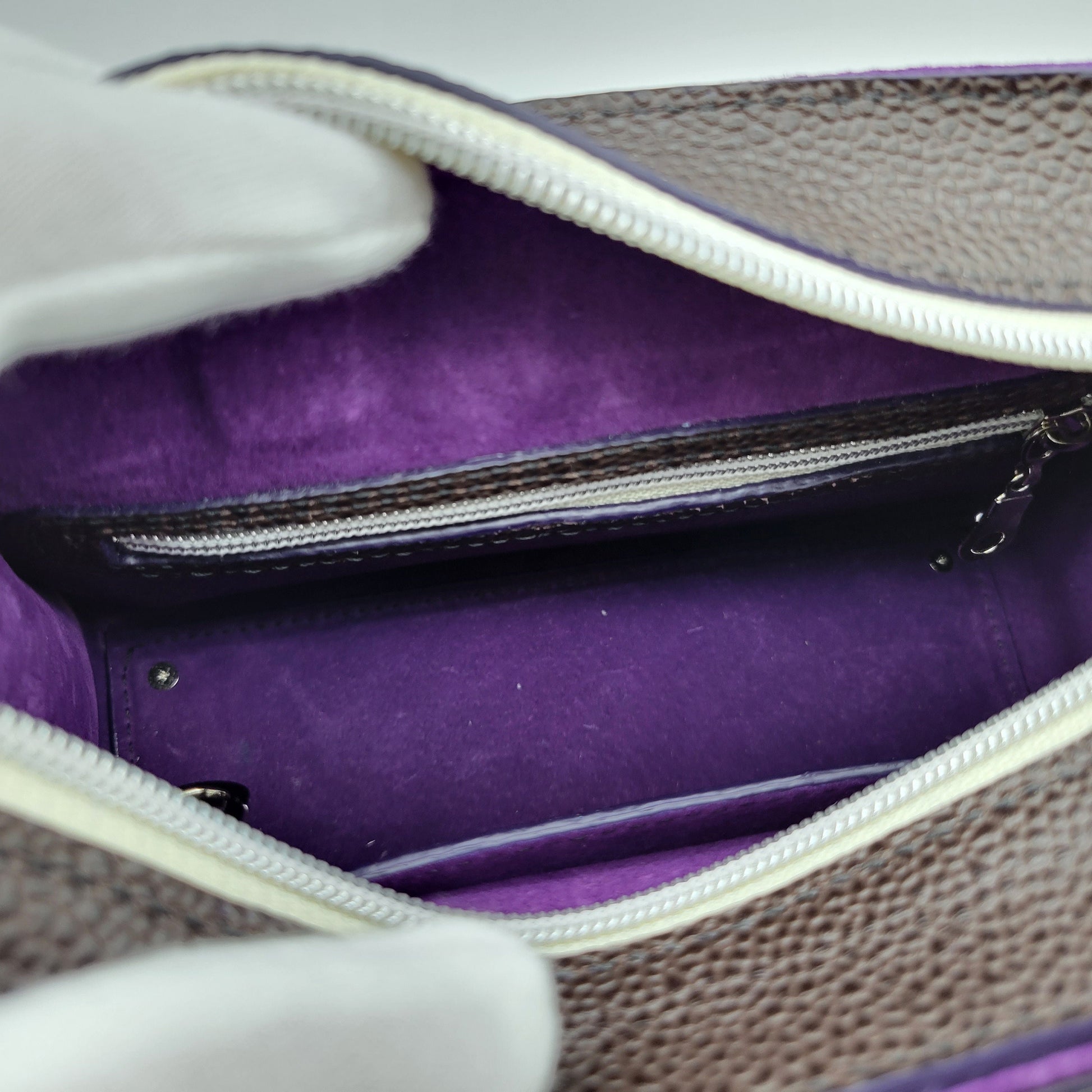 Inside is a top grain purple suede leather